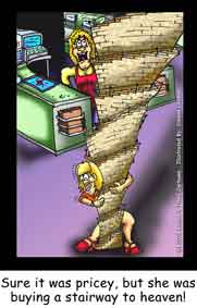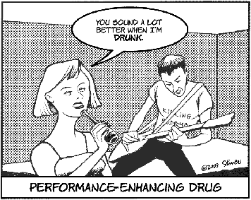 under his arm. He sits the octopus down on a stool and tells everyone in the bar that this is a very talented octopus. "He can play any musical instrument in the world." Everyone in the pub laughs at the man, calling him an idiot. So he says that he will bet £50 against anyone who has an instrument that the octopus can't play. A customer walks up with a guitar and sets it beside the octopus. Immediately the octopus picks up the guitar and starts playing a solo which would make Jimi Hendrix look like a banjo player. The guitar owner pays up the £50. Another customer walks up with a trumpet. This time the octopus plays the trumpet which would blow Miles Davis out of the studio. The trumpet-owner coughs up the £50. Then Hamish walks up, and plonks some bagpipes on the table. The octopus fumbles with the bagpipes for a minute and then backs off with a confused look. Ha!" the Scot says. "Can ye nae plae it?" The octopus looks up at him and says, "Play it? I'm going to f@ck it as soon as I figure out how to get its pyjamas off!" |
